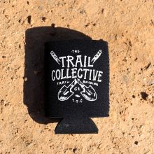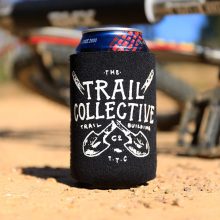 Single colour screen print on a fold-able 5mm neoprene drink cooler for those thirsty moments at the trails.